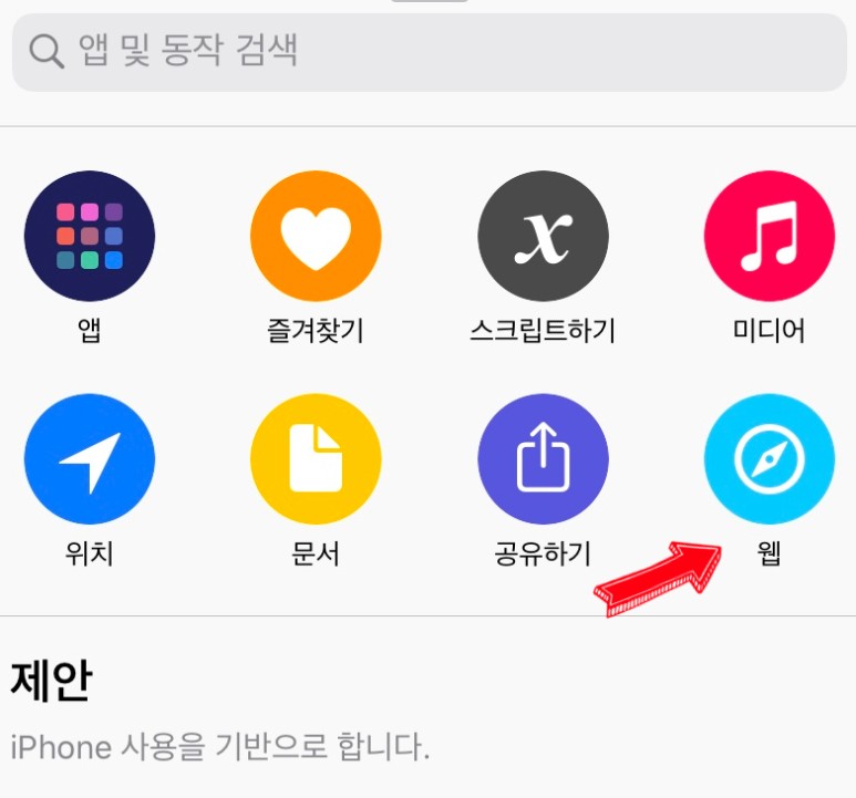 우측 하단에 "웹"을 선택합니다.ㅜ 왜냐하면 좀 전에 나의 큐알코드 웹 주소를 복사해 왔기 때문이지요.