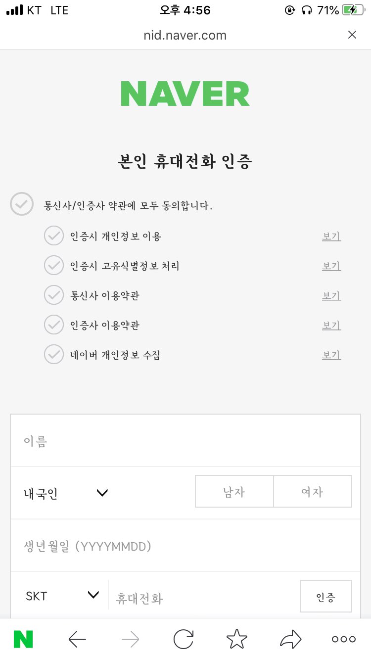 6. 휴대폰번호를 통한 인증을 해주셔야해요. 핸드폰 번호를 입력하고, 동의하기 체크! 후 확인 눌러주세요.