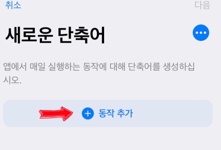 새로운 단축어를 추가할 수 있는 창이 나오는데 여기서 큐알코드 만들기를 위해 동작 추가를 선택.